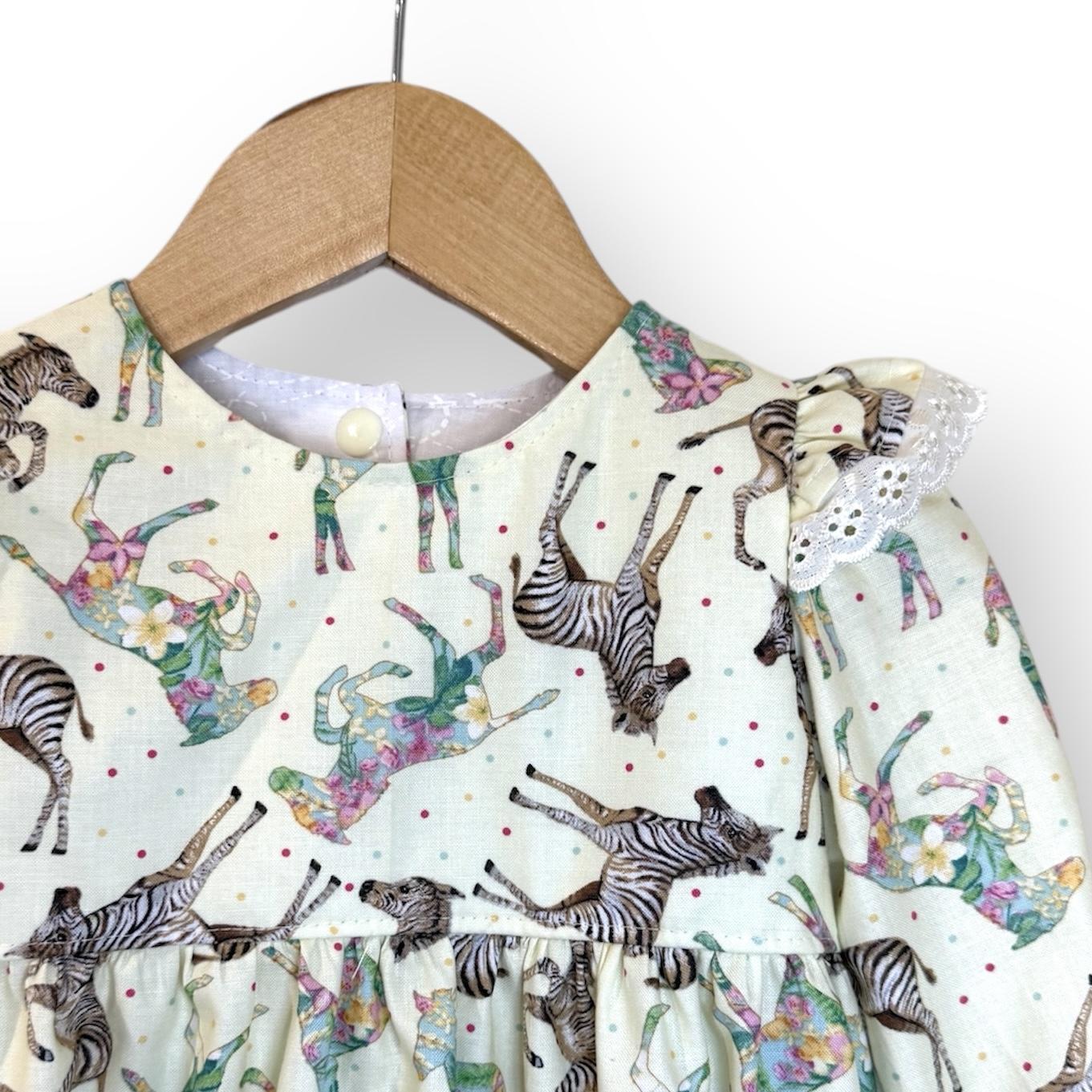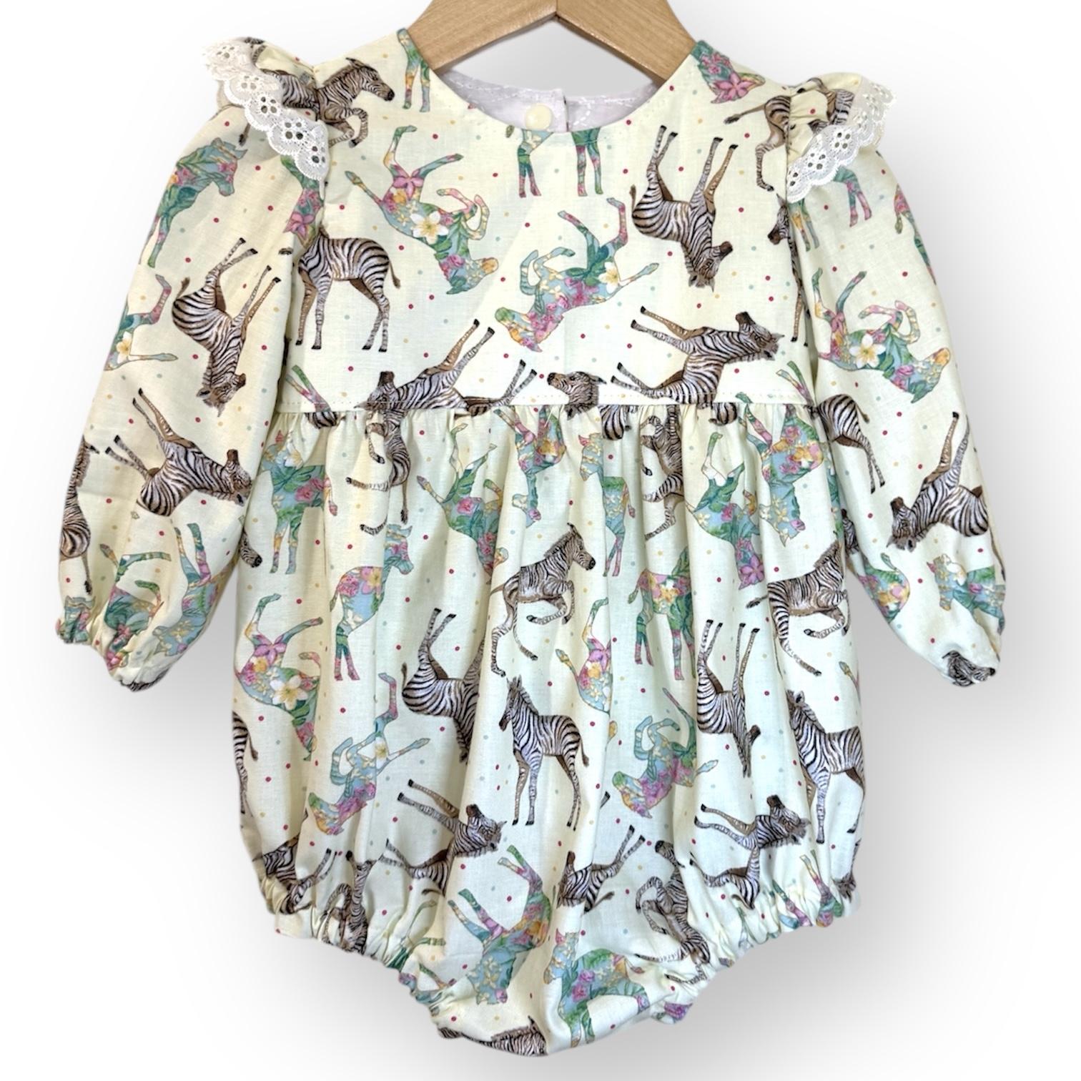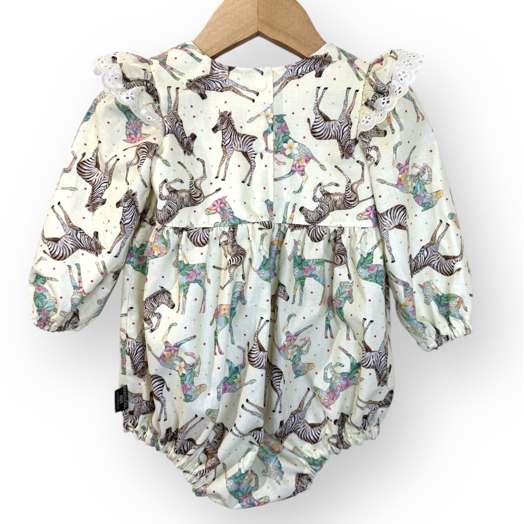 Lemon Zebra Long Sleeve Tea Party Romper